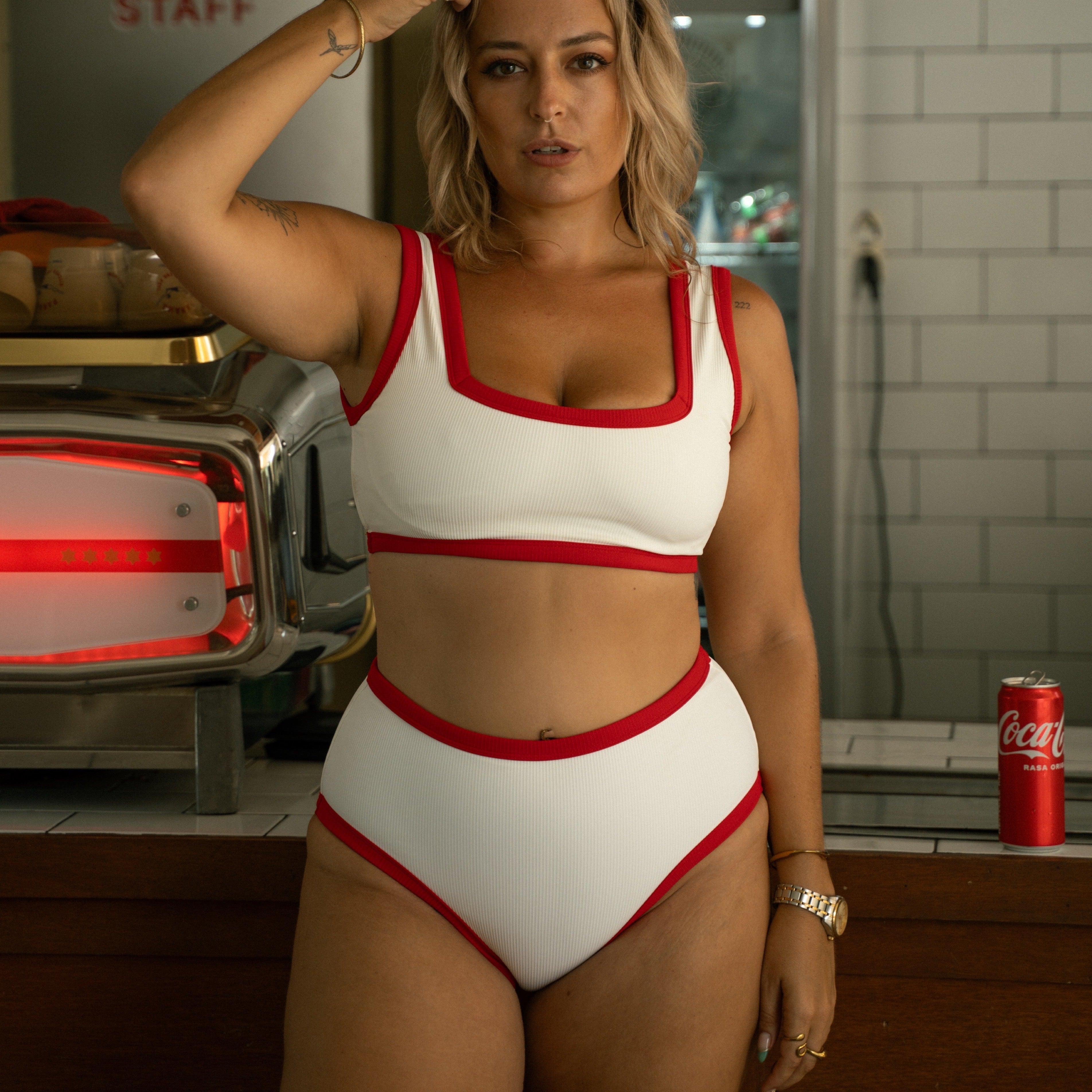 Follow The Sun / Bikini bottoms / White + Red Rib