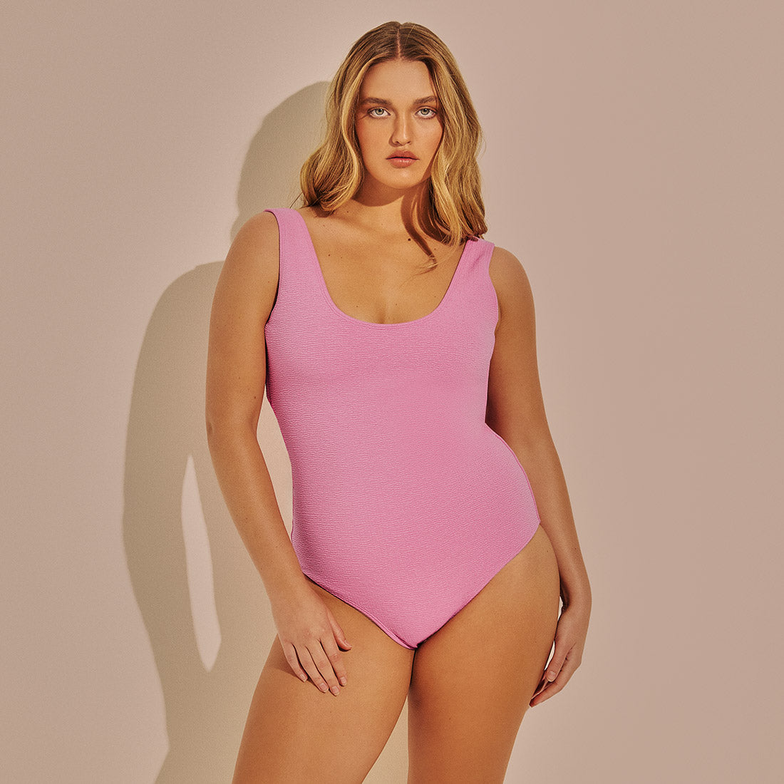 Terri wears the One of My Kind one-piece size AU 12. Height 5'10".