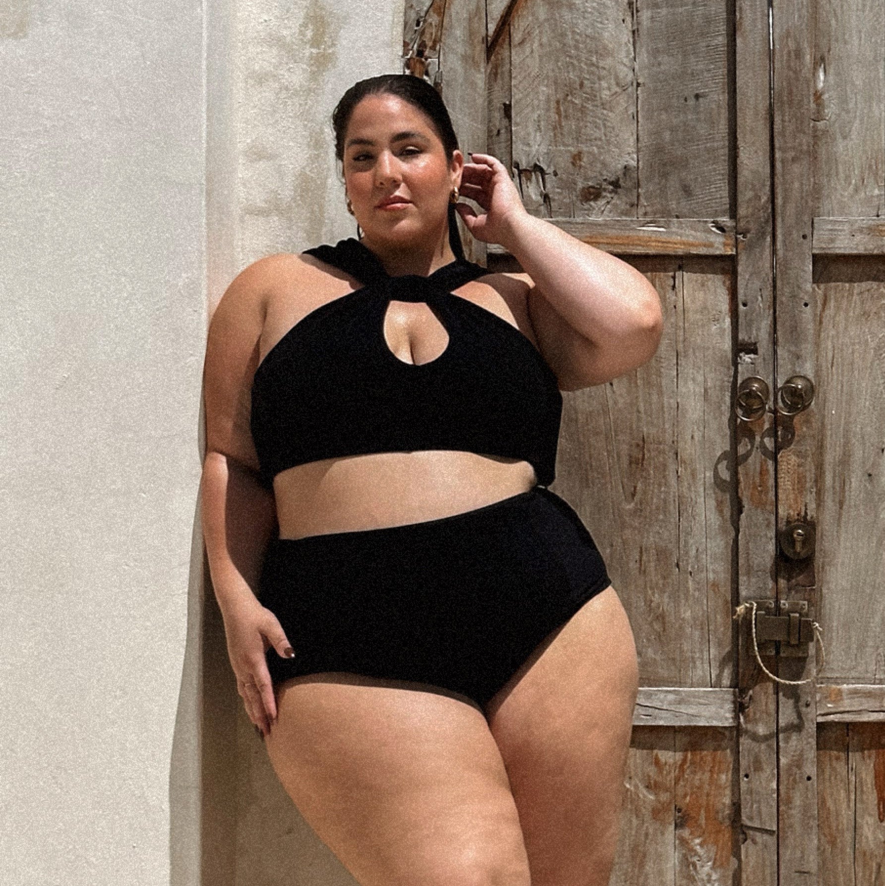 Maddy wears the Cross My Heart top & Born This Way bottoms in size AU 22. Height 5'5".